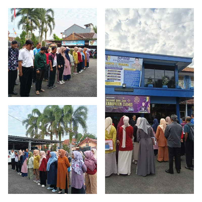 Cisaga – SMPN 1 Cisaga melaksanakan apel pagi guru dan staf tata usaha sebelum mengawali kegiatan pembelajaran. Apel tersebut dipimpin langsung oleh Kepala Sekolah dan berlangsung di halaman sekolah.