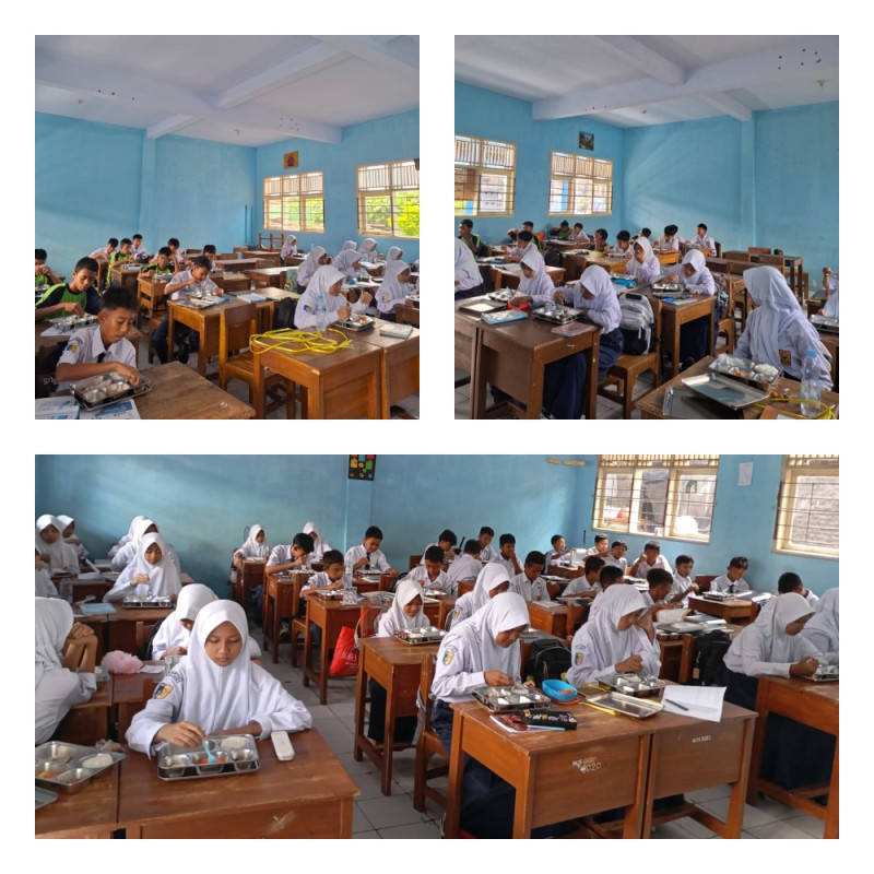 Pelaksanaan program MBG dilakukan secara rutin dengan memperhatikan standar kebersihan dan keamanan pangan. Makanan yang dibagikan terdiri dari sumber karbohidrat, protein, sayuran, dan buah-buahan yang mendukung kebutuhan gizi harian siswa.
